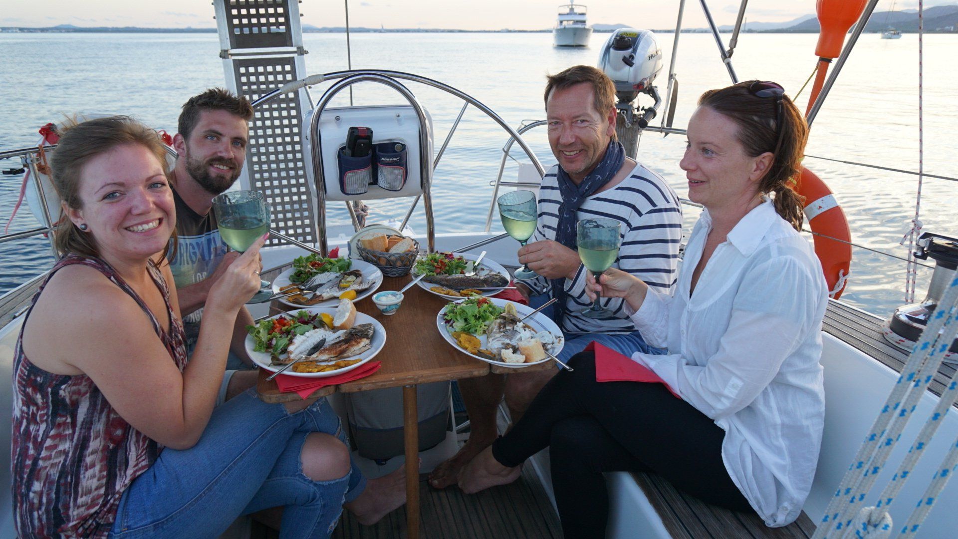 Um 19 Uhr gibt es dann ein Dinner an Bord und wir servieren Frische Dorade,